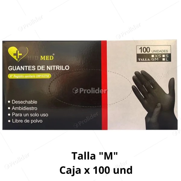 Guantes de Nitrilo Hid Med Negro Talla M Caja x 100 unidades